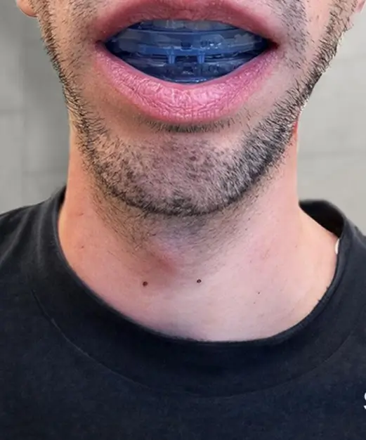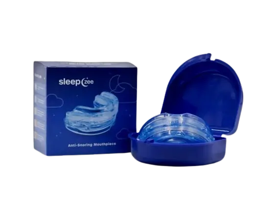 SleepZee is a mandibular advancement device, which means it holds your lower jaw slightly forward. By doing this, it helps keep your airway open and prevents the tissues in your throat from collapsing.